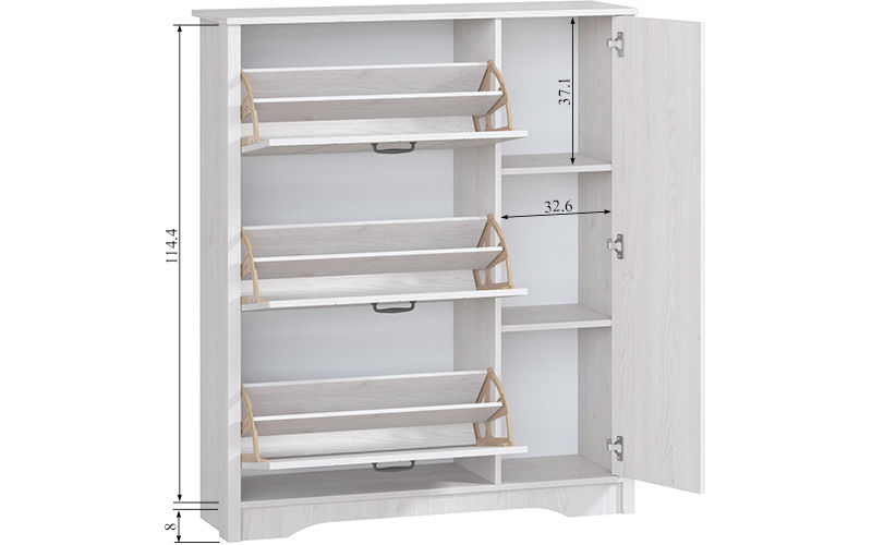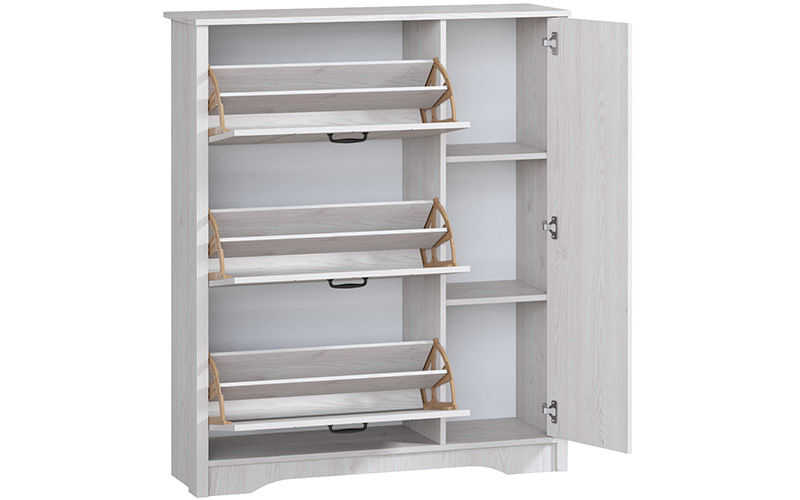 Обувница Рейкьявик-2 из одноименной коллекции мебели в стиле лофт продуманная система хранения для прихожей. Выполненная из ламинированной ДСП, конструкция не боится влаги, не требует ухода и очень практична в ежедневной эксплуатации!