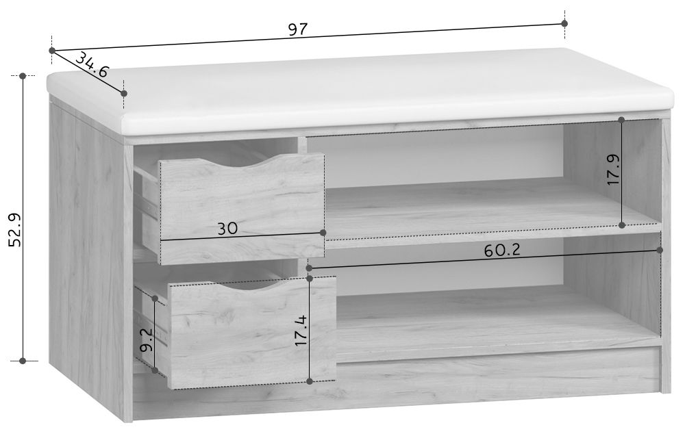 Размеры Ширина 97 см Глубина 35 см Высота 53 см
