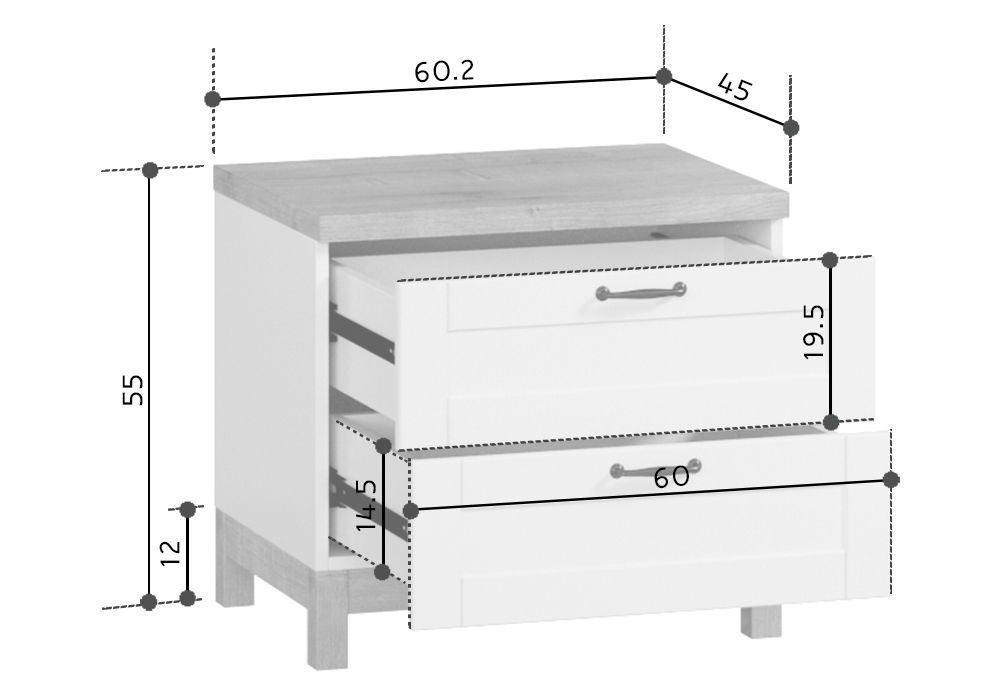 Прикроватная тумба Равенна станет элегантным дополнением спальни. Компактная конструкция тумбы включает два вместительных выдвижных ящика, которые подходят для хранения аксессуаров, мелких предметов гардероба и других нужных вещей. Строгая формы, нейтральная цветовая гамма тумба Равенна украсит любой интерьер.