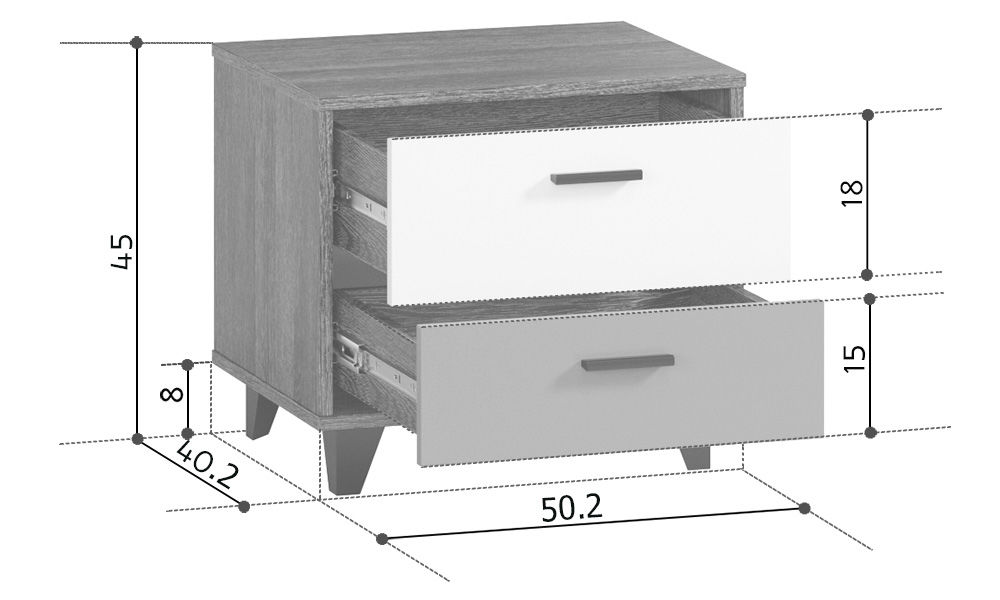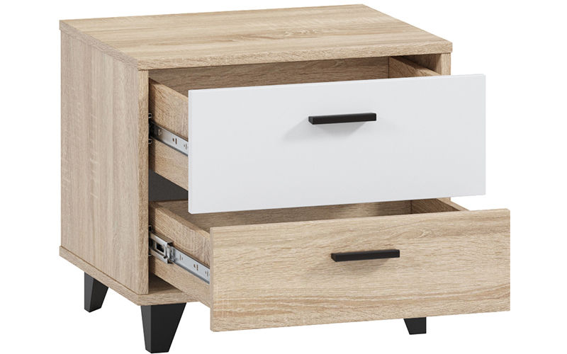 Концепт функциональная и стильная прикроватная тумба. Выполненная в модных оттенках, она отлично сочетается с другой мебелью из одноименной коллекции. Высокие ножки из массива делают конструкцию устойчивой и визуально легкой.