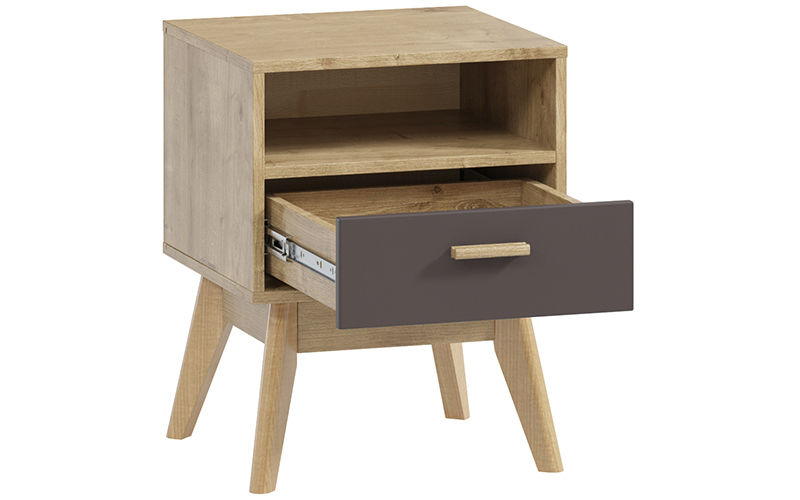 Прикроватная тумба Нордик впишется в любую современную спальню. Универсальные формы и сдержанная цветовая гамма дополнят существующий интерьер, подчеркнут его лаконичность и сдержанность. Высокие ножки из массива березы приподнимают конструкцию на высоту, комфортную для отдыхающего человека.
