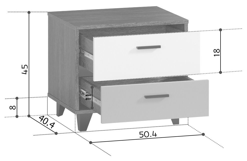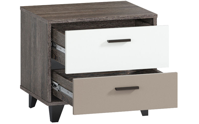 Концепт функциональная и стильная прикроватная тумба. Выполненная в модных оттенках, она отлично сочетается с другой мебелью из одноименной коллекции. Высокие ножки из массива делают конструкцию устойчивой и визуально легкой.