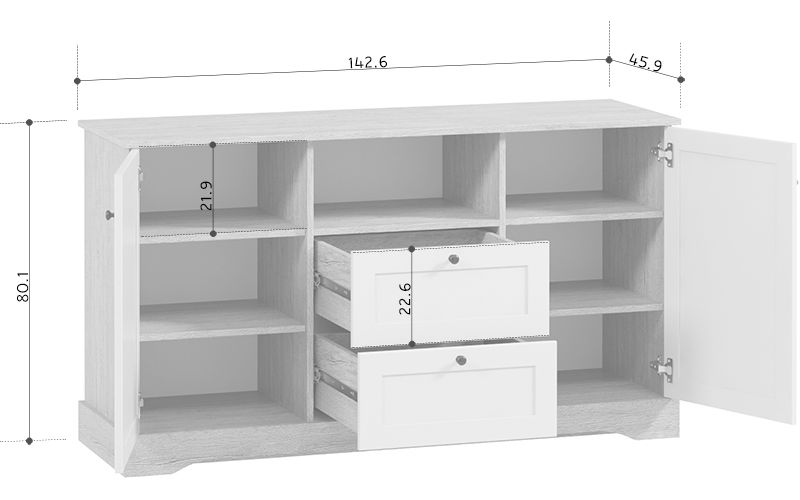 Размеры Ширина 143 см Глубина 46 см Высота 81 см