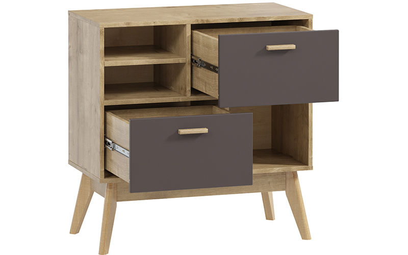 Невысокий комод Нордик-1 дополнит обстановку современной спальни или гостиной. Приятная комбинированная расцветка, оригинальный дизайн, высокие ножки из массива березы главные особенности модели, благодаря которым она будет эффектно смотреться в лаконичном интерьере.