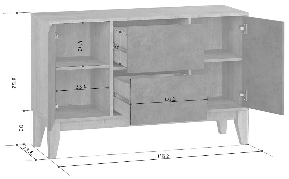 Размеры Ширина 119 см Глубина 40 см Высота 76 см