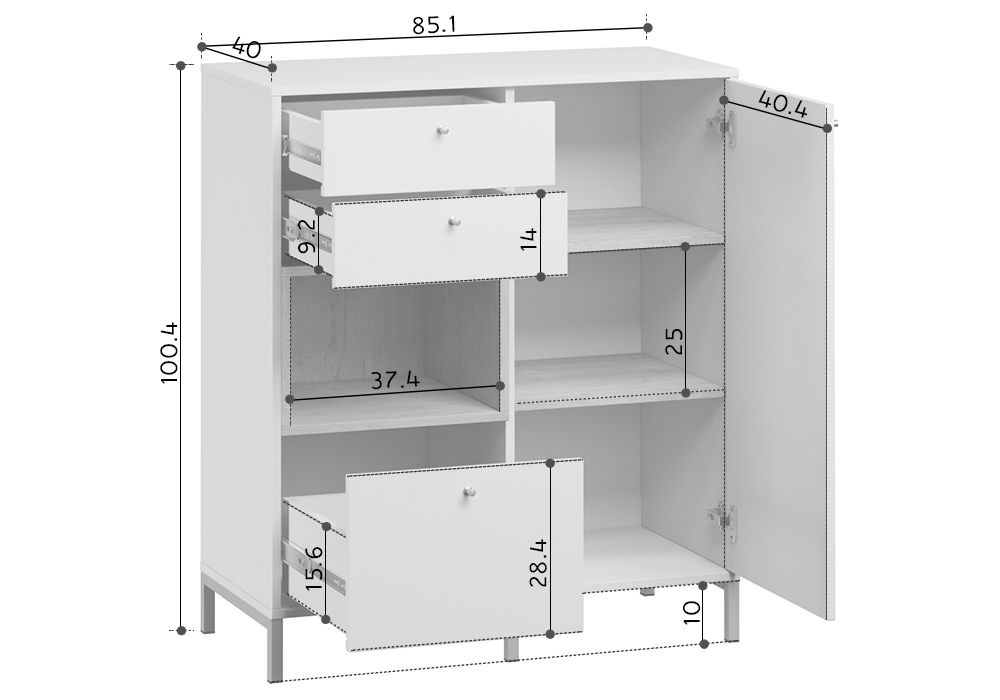 Размеры Ширина 86 см Глубина 40 см Высота 101 см