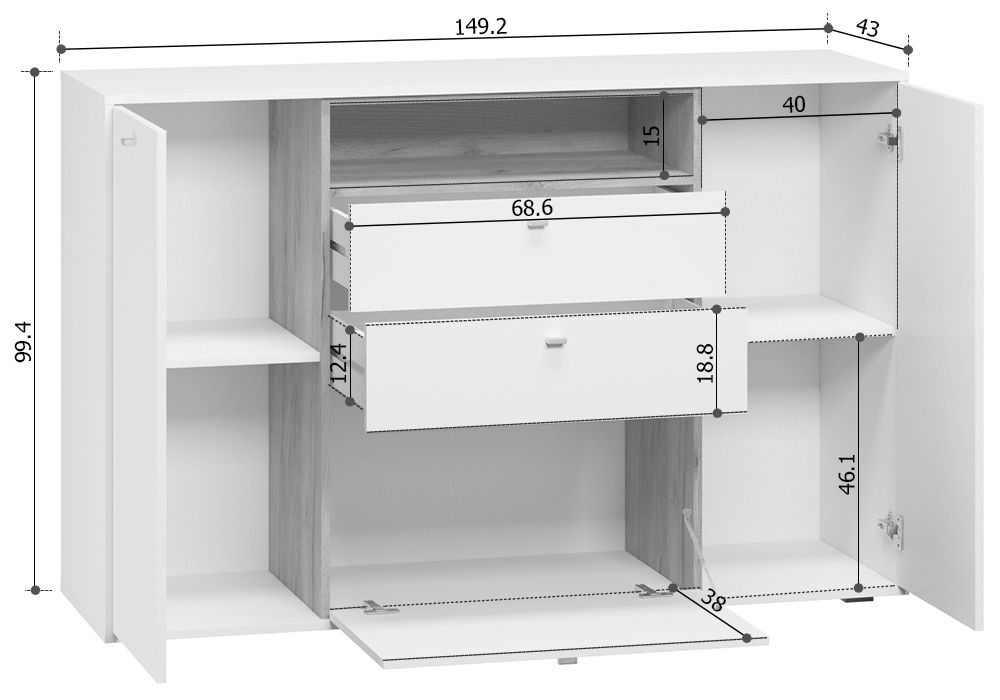Размеры Ширина 150 см Глубина 43 см Высота 100 см
