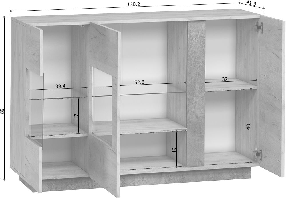 Размеры Ширина 131 см Глубина 42 см Высота 89 см