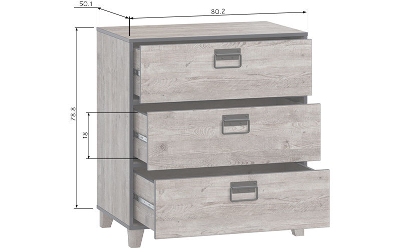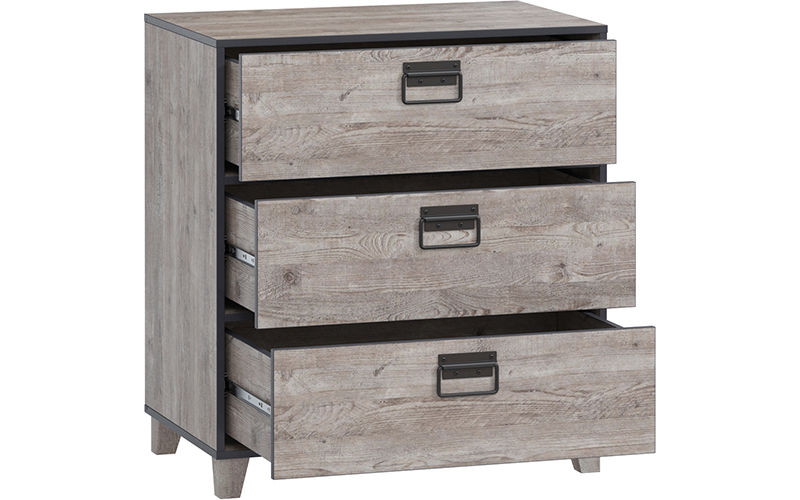 Компактный и функциональный, комод Эссен создан в лучших традициях индустриального интерьера. Стильный дизайн объединяет фактуру дерева с контрастной окантовкой и металл. Три выдвижных ящика позволяют рассортировать и удобно хранить постельные принадлежности, одежду, аксессуары.