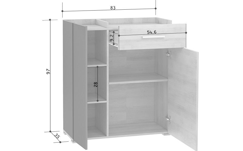 Размеры Ширина 83 см Глубина 35 см Высота 97 см