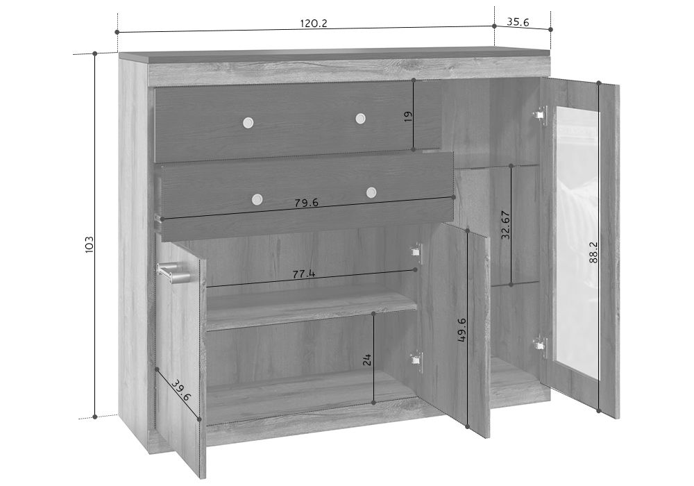 Размеры Ширина 121 см Глубина 36 см Высота 103 см