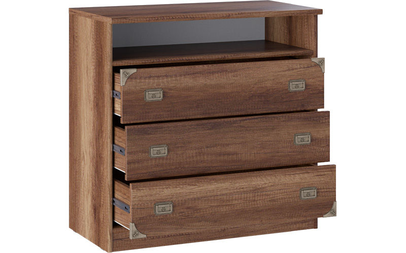 Комод Навигатор с тремя выдвижными ящиками станет функциональным дополнением обстановки детской. Выполненный в морском стиле, он отлично сочетается с другими предметами из одноименной серии. Небольшие габариты и хорошая вместимость делают модель незаменимой для маленьких комнат.