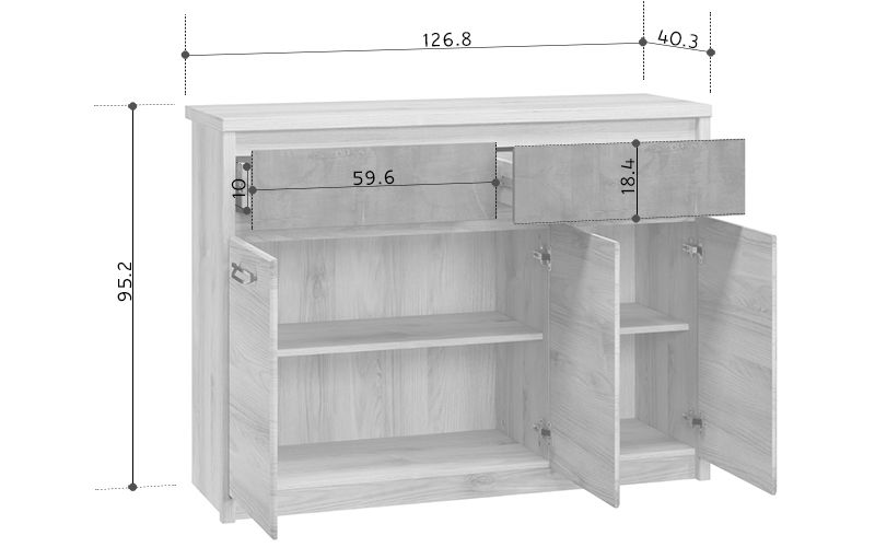 Размеры Ширина 127 см Глубина 41 см Высота 96 см