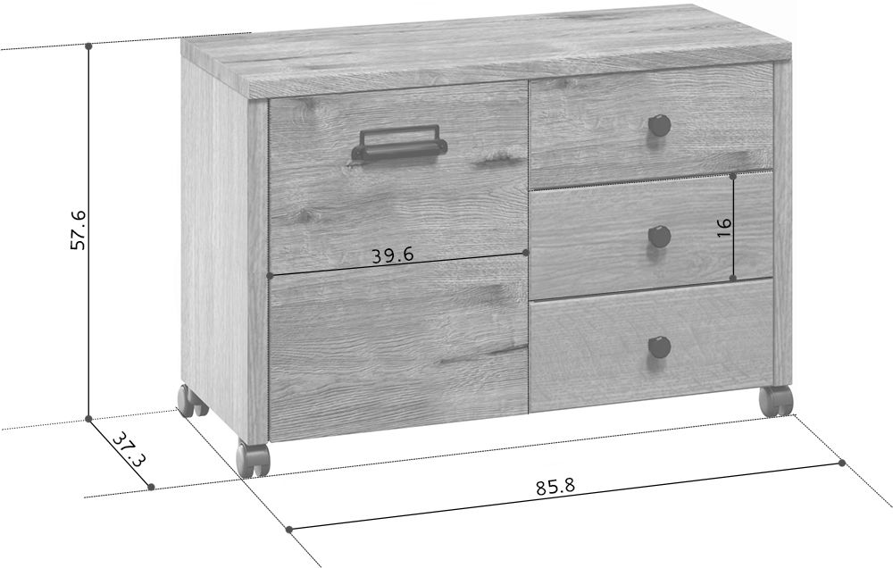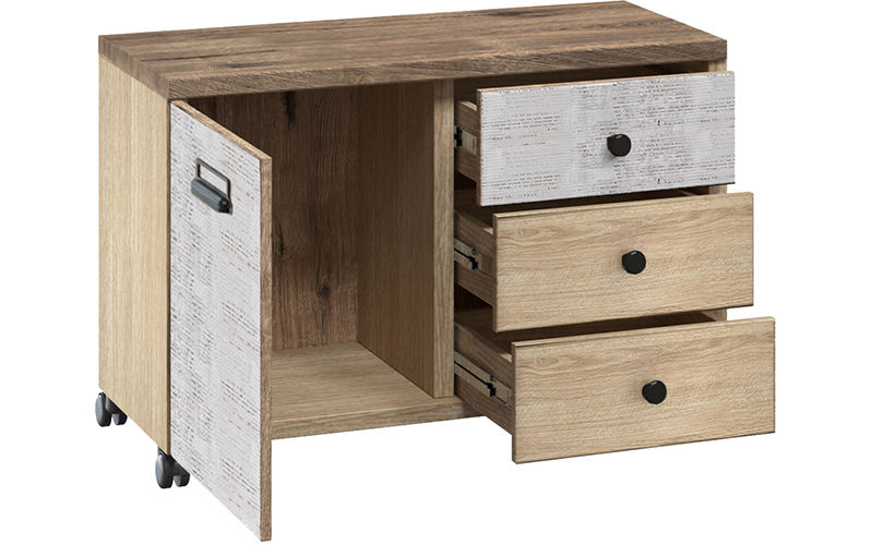 Комбинированный комод Дизель, сочетая вместительность, актуальный дизайн и высокое качество, займет достойное место в любом интерьере! Для хранения вещей предназначены ниша с распашной створкой и три небольших выдвижных ящика, расположенных друг над другом.