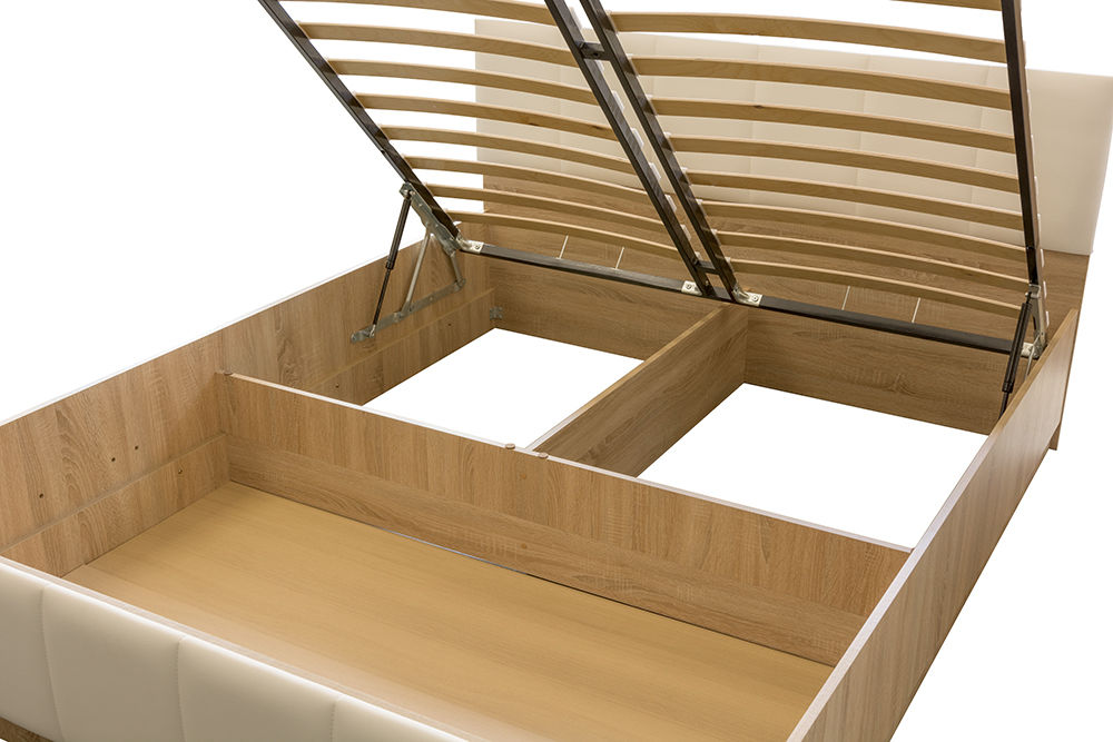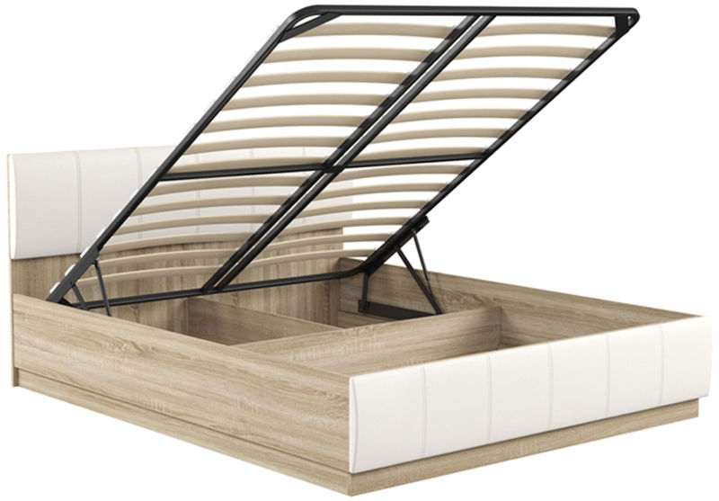 Минимализм и функциональность! Простые и четкие формы позволяют кровати Трейси гармонично вписаться в любой интерьер. Изголовье и изножье модели декорировано искусственной кожей белого цвета в сочетании со светлым оттенком Дуба Сономы она смотрится современно и стильно.