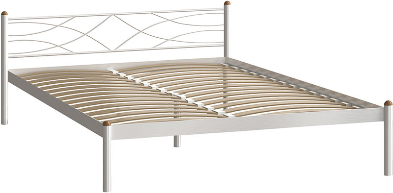 Лаконичная современная кровать Экзотика выполнена в технике выверенного минимализма. В дизайне с правильными формами нет ничего лишнего только ненавязчивый декор в виде гнутых металлических прутьев в изголовье и деревянных элементов на верхушках четырех опор.