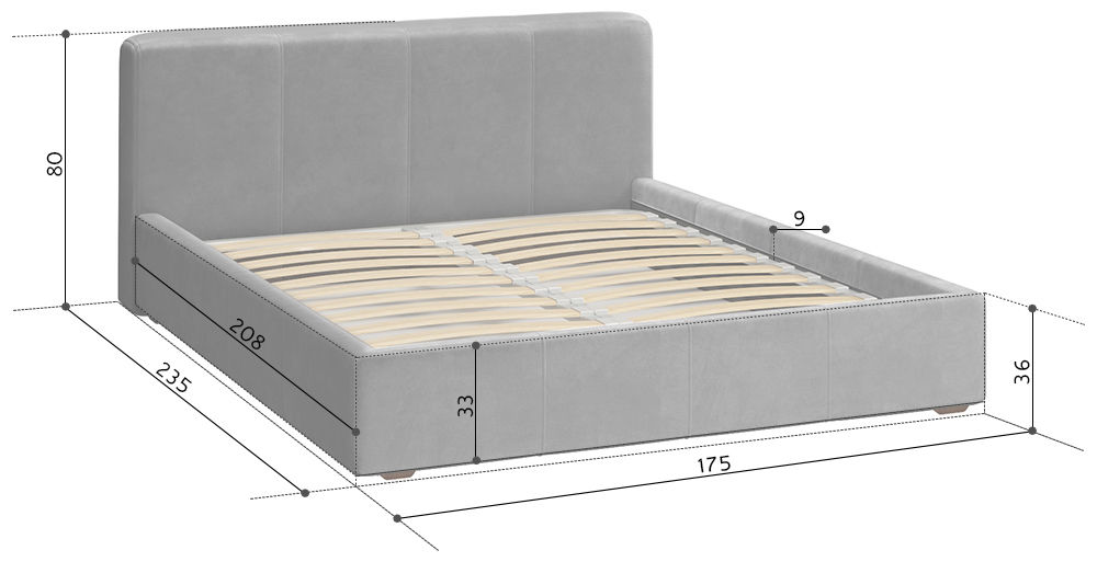 Размеры Длина 235 см Ширина 175 см Высота 80 см