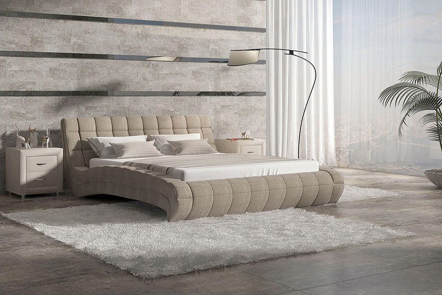 Изящный силуэт кровати Милано станет настоящим украшением спальни! Изогнутая форма основания выглядит изысканно и притягивает взгляды. Неповторимый вклад в образ вносит обивка из бархатистого велюра с декоративной строчкой по всему периметру спального места. Кровать имеет мягкое изголовье и широкие бортики по краям, что делает отдых еще приятнее!
