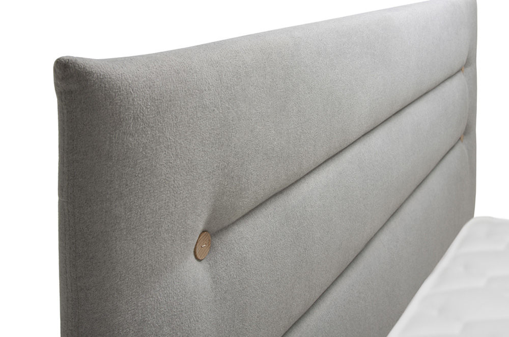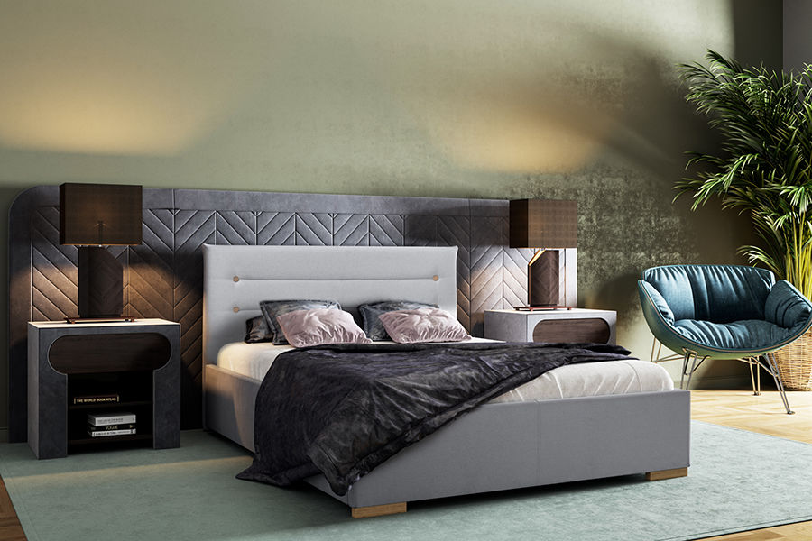Минимализм, эргономика, удобство все эти качества гармонично сочетаются в кровати Рона. Ее эстетичный и привлекательный дизайн формируется за счет визуального баланса массивного основания и высокой спинки с лаконичной отделкой пуговицами и декоративной строчкой.