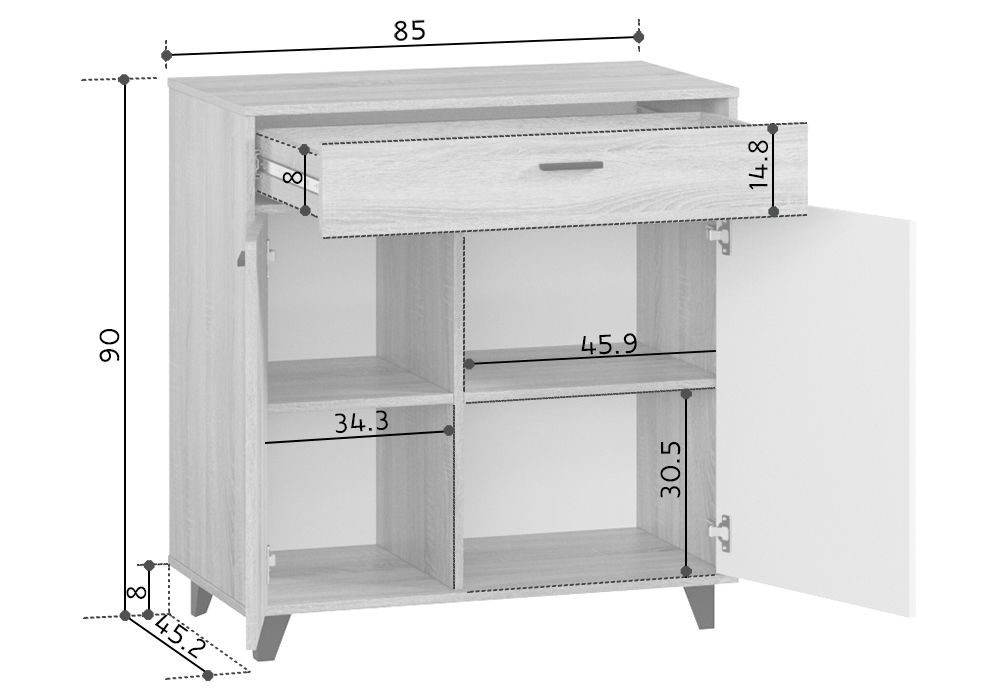 Размеры Ширина 85 см Глубина 46 см Высота 90 см