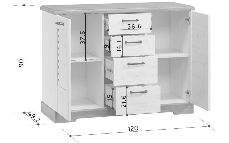 Размеры Ширина 120 см Глубина 50 см Высота 90 см