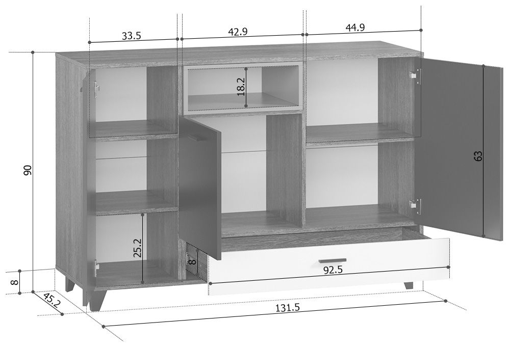 Размеры Ширина 132 см Глубина 46 см Высота 90 см