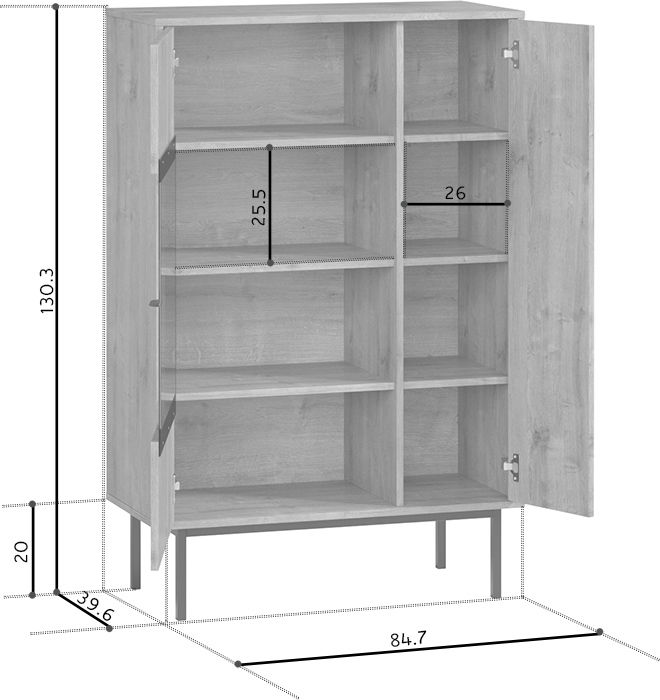 Размеры Ширина 85 см Глубина 40 см Высота 131 см