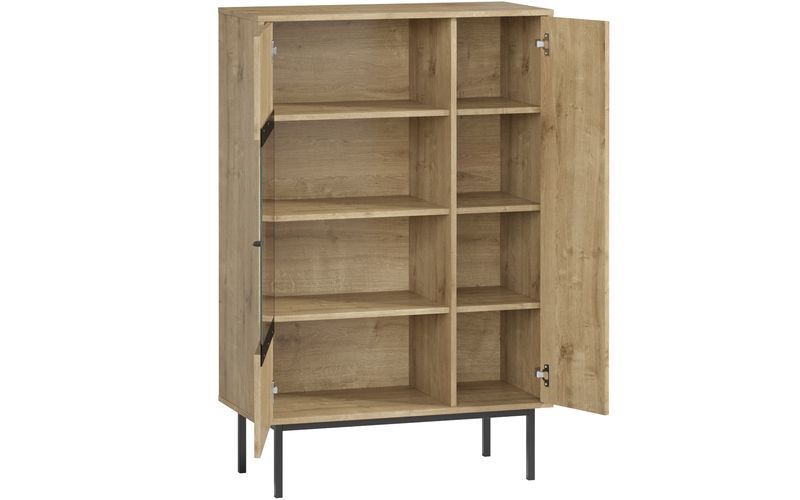 Компактный и вместительный комод с традиционной отделкой под дерево универсальная модель для современного интерьера. От привычных аналогов его отличают распашные дверцы со стеклянной вставкой они добавляют модели функциональности и эстетичности.