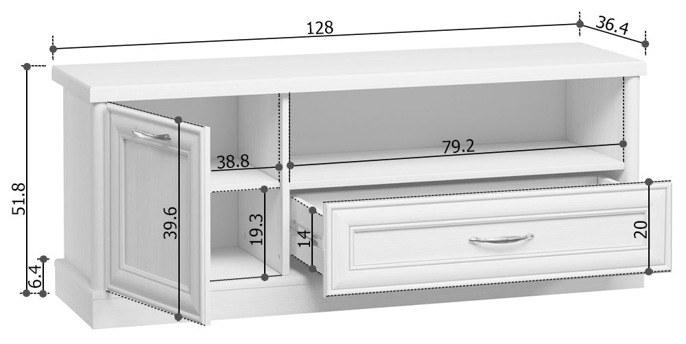 Размеры Ширина 128 см Глубина 37 см Высота 52 см