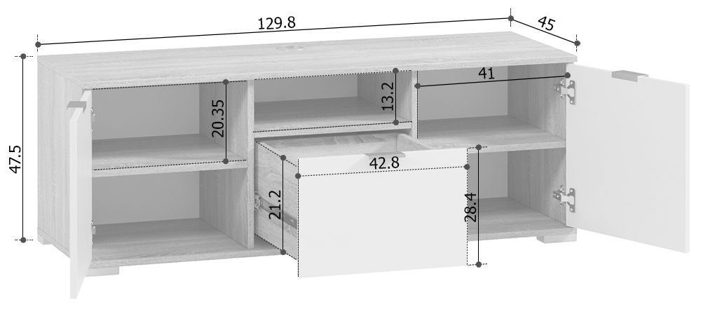 Размеры Ширина 130 см Глубина 45 см Высота 48 см