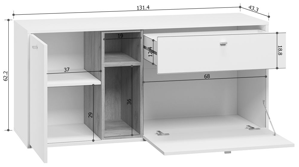 Размеры Ширина 132 см Глубина 44 см Высота 63 см