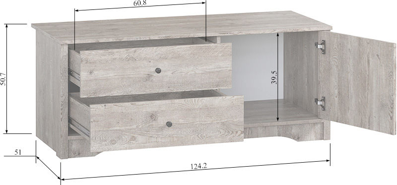 Размеры Ширина 124 см Глубина 51 см Высота 51 см