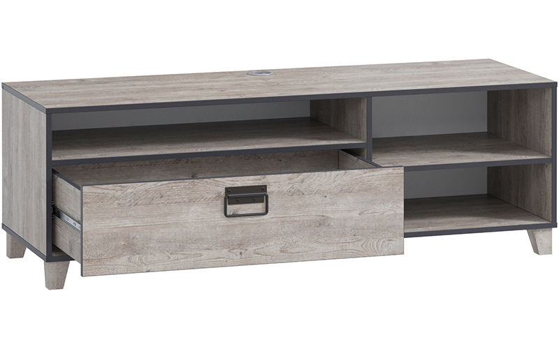 ТВ-тумба Эссен функциональный предмет интерьера, который придаст вашей гостиной завершенный вид. Поверхность столешницы подойдет для телевизора любой диагонали. Открытые отсеки предназначены для сопутствующей техники (тюнера, приставки), а также декоративных вещей. Выдвижной ящик с эргономичной накладной ручкой вместит целую видео-коллекцию.