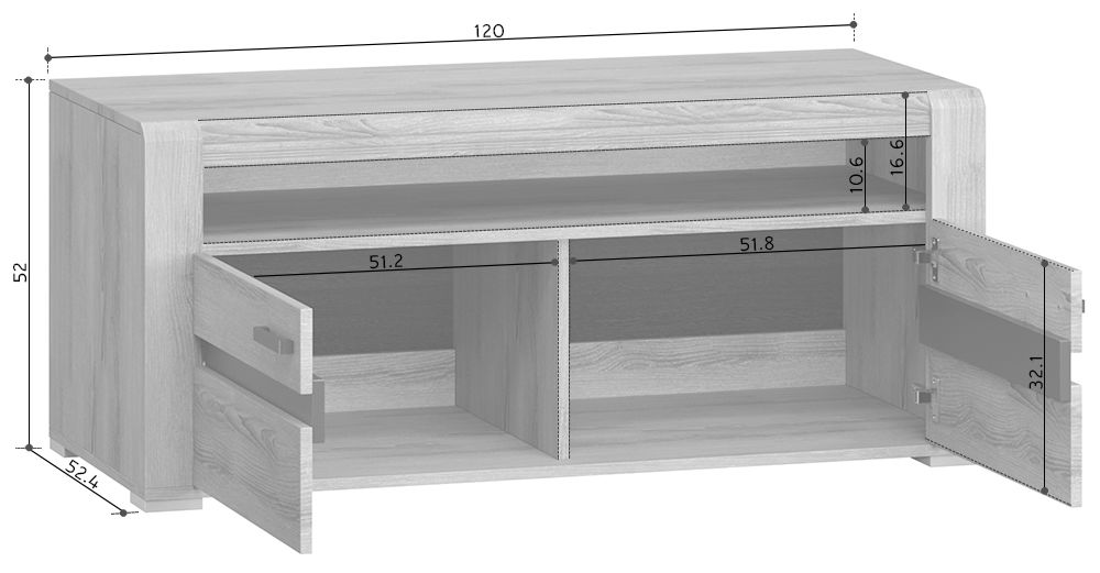 Размеры Ширина 120 см Глубина 55 см Высота 54 см