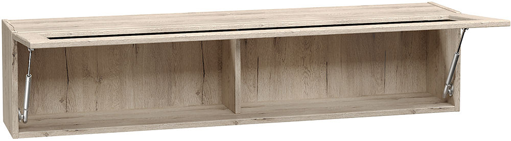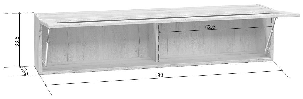 Навесная полка Оскар может использоваться как дополнительное место для хранения в гостиной или на кухне. Стандартная форма конструкции позволяет разместить ее в любом интерьере, а открывающаяся вверх дверца защитит содержимое от пыли.