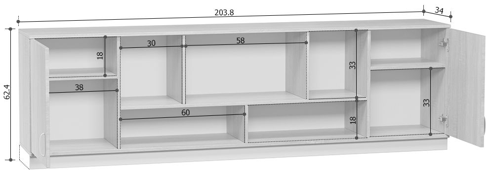 Размеры Ширина 204 см Глубина 34 см Высота 63 см
