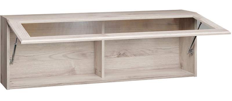Полка Джаз с откидным дверцей на газлифтах предназначена для демонстрации бережного хранения книг, барной посуды, милых сердцу вещиц или коллекции сувениров. Несколько таких полок успешно заменят громоздкие серванты и витрины, сэкономив пространство.