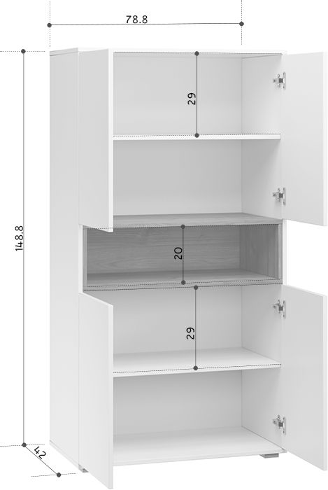 Размеры Ширина 79 см Глубина 42 см Высота 149 см