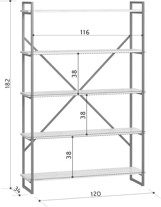 Размеры Ширина 120 см Глубина 34 см Высота 182 см