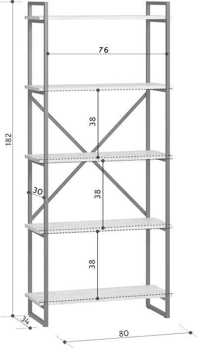 Размеры Ширина 80 см Глубина 34 см Высота 182 см