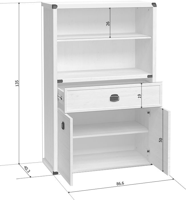 Размеры Ширина 87 см Глубина 41 см Высота 135 см
