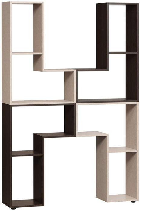 Высокий открытый стеллаж в оригинальном исполнении понравится любителям нетривиальной классики в интерьере. Множество полочек разного размера позволяют хранить в быстром доступе необходимые под рукой книги, предметы и мелочи, а так же расставить любимые статуэтки и фотографии. Изделие выполняется из ЛДСП толщиной 16 мм, края обработаны кромкой ПВХ 0,4 мм. Стеллаж устанавливается на пластиковые опоры. Обратите внимание! Модули стеллажа соединяются между собой с помощью межсекционных стяжек, которые входят в комплект фурнитуры. Для соединения модулей между собой необходимо просверлить отверстия диаметром 5 мм в тех деталях, которые будут соприкасаться плоскостями. Для сверления точных отверстий рекомендуется использовать струбцину. Стеллаж не предусмотрен для зонирования пространства. Для устойчивости стеллаж необходимо крепить к стене при помощи монтажных уголков, которые входят в комплект фурнитуры.