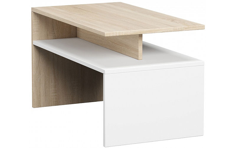 Журнальный стол Дрезден неординарной геометричной формы для стильной гостиной. Модель весьма функциональна можно организовать чаепитие, пространство для игр детей или занятия рукоделием. Под столешницей находится полка, разделенная перегородкой. Накладки на опорах защитят напольное покрытие. Стол изготовлен из ЛДСП в контрастных оттенках натурального дерева, благодаря чему выглядит уютно и эффектно.