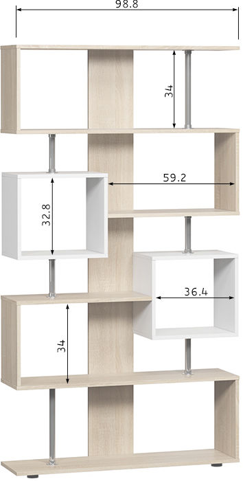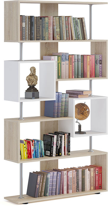 Открытый функциональный стеллаж с необычной геометрией полок отличное решение для организованного хранения и зонирования в детской, гостиной или обстановке офиса.