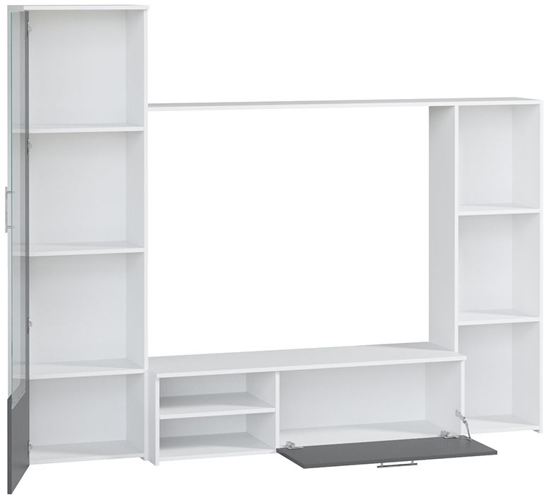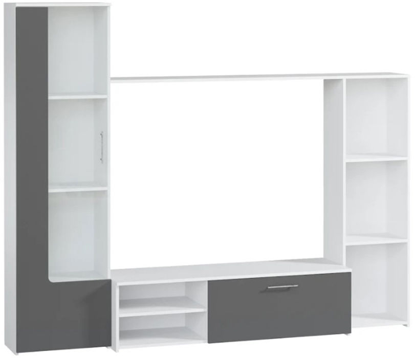 Стенка Витта функциональный и современный предмет мебели для гостиной. Комбинация матового белого и серого оттенка будет гармонично смотреться в скандинавском или индустриальном интерьере. А компактные габариты и визуально легкая конструкция подойдут для обстановки небольшой комнаты или зоны отдыха.