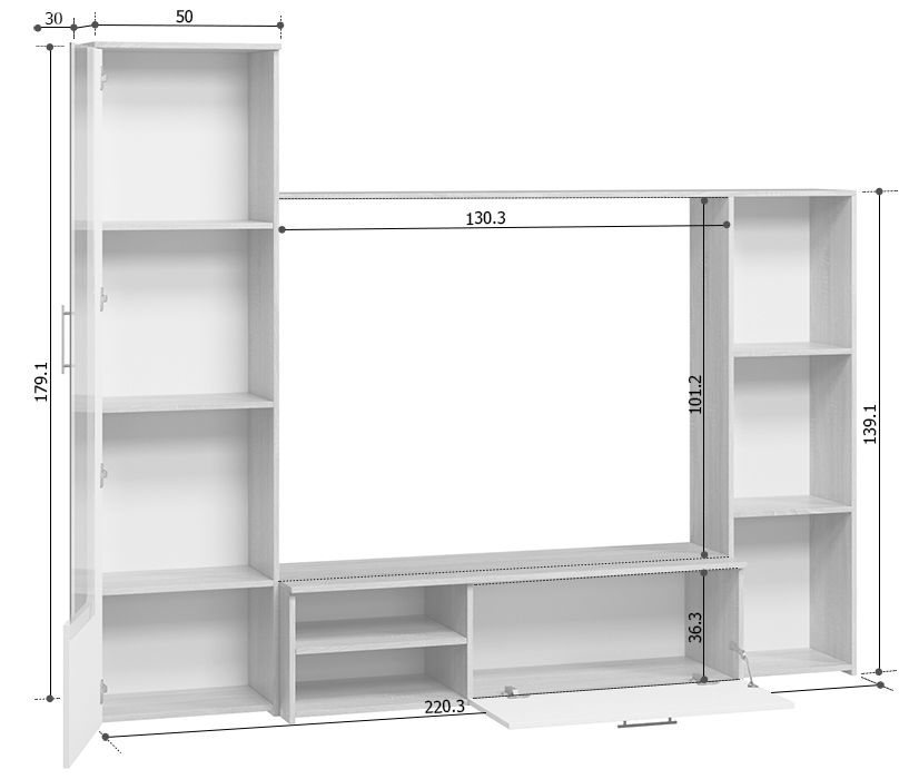 Размеры Ширина 221 см Глубина 40 см Высота 180 см