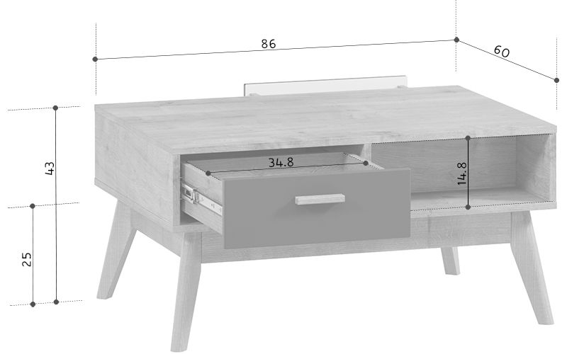 Размеры Ширина 86 см Глубина 60 см Высота 43 см
