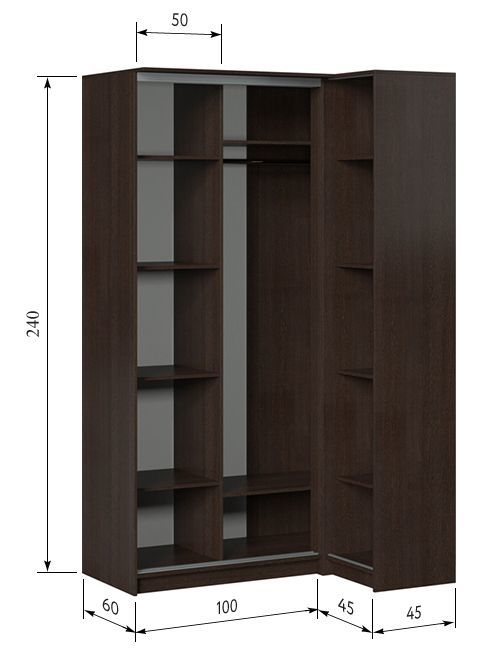 Современный угловой шкаф решит проблему хранения одежды и домашних принадлежностей даже в небольшом помещении. Эргономичный и вместительный, он с разумной прагматичностью использует каждый сантиметр пространства. Доступ к внутренней части получается легким благодаря современной системе направляющих. А наличие ленты-щетки предотвращает попадание пыли внутрь шкафа, а так же способствует бесшумному открыванию и закрыванию створок.