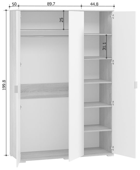 Размеры Ширина 135 см Глубина 50 см Высота 200 см