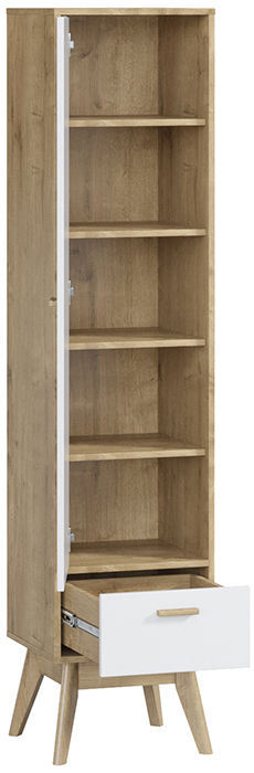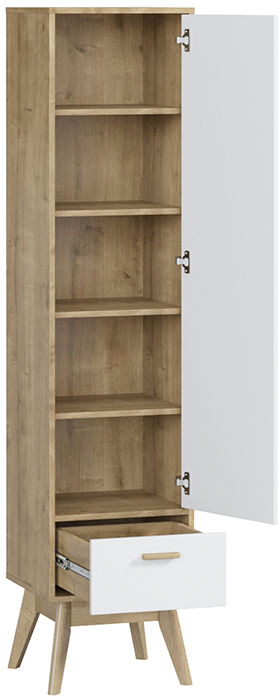 Шкаф Нордик сочетает в себе продуманную конструкцию и современный дизайн. Благодаря отсутствию сложных элементов и простой прямоугольной форме шкаф выглядит стройным, а высокие ножки выгодно дополняют образ.